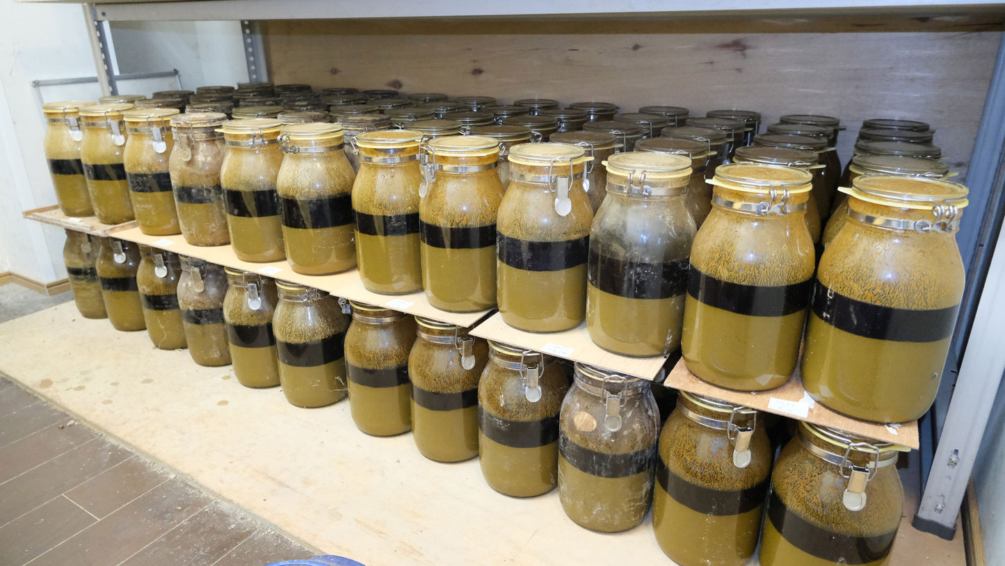 撹拌させる期間、安静させる期間、仕上げの期間があり、全ての行程で1年かけて製品化しております。